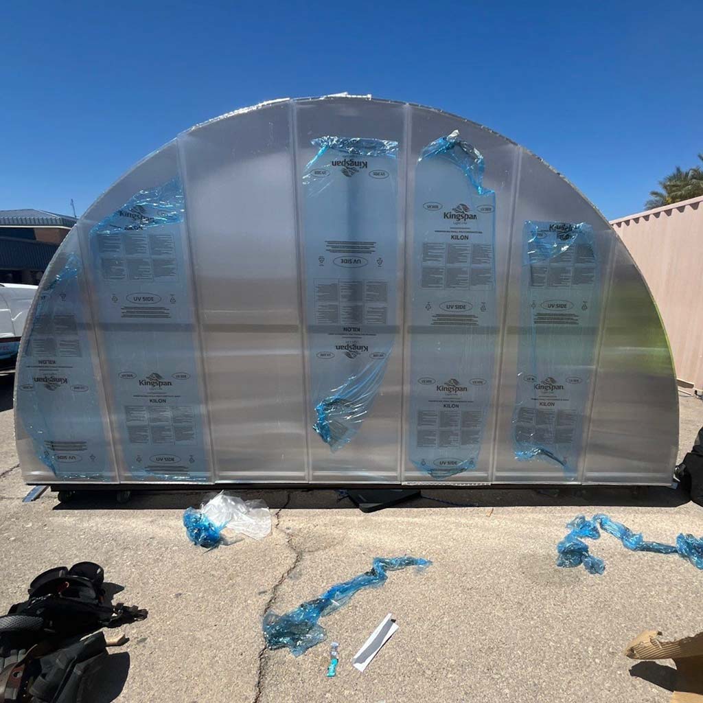 The KLA skylight is shipped in crates containing all necessary components to assemble the half round barrel vault.