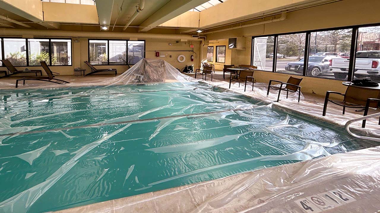 We did not want any issues with small debris in the pool. It is much easier and safer to cover the pool temporarily as we perform the demolition of the old skylight.